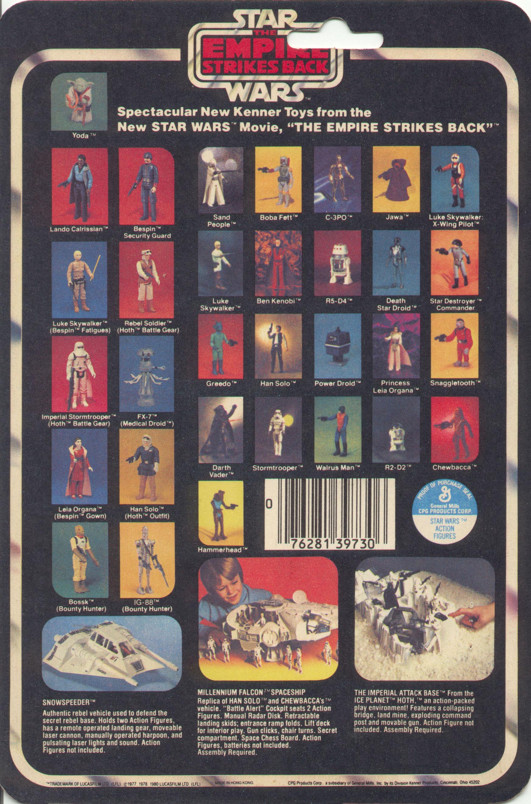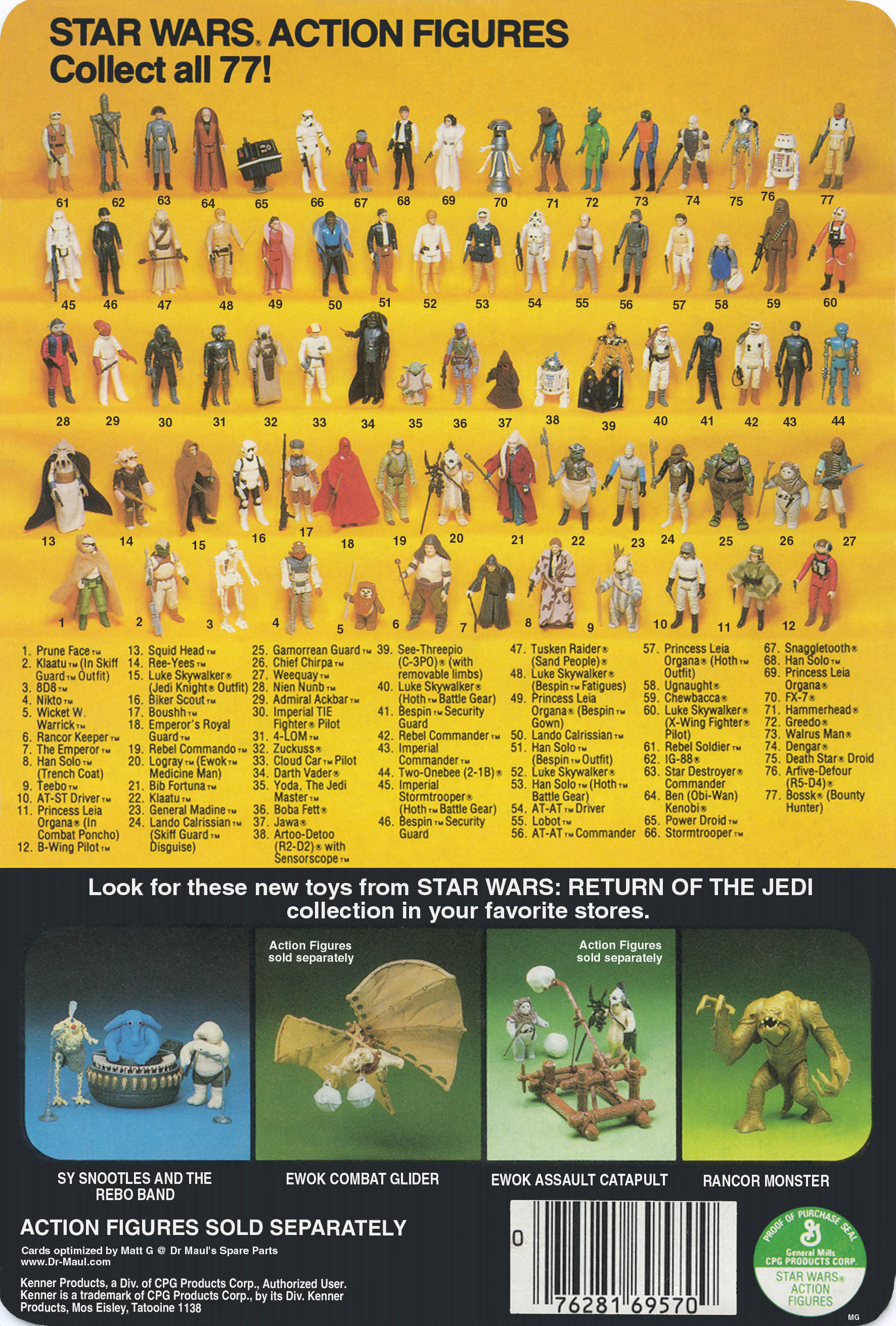 An interesting point for collectors printing out vintage cards is that the card dimensions changed quite a bit through the years. The following measurements come straight from my collection: 'Star Wars' cards 149x222mm; 32 back 'Empire Strikes Back' cards 154x229mm; later 'Empire', 'Jedi', and 'Power of the Force' cards all 151x228mm.