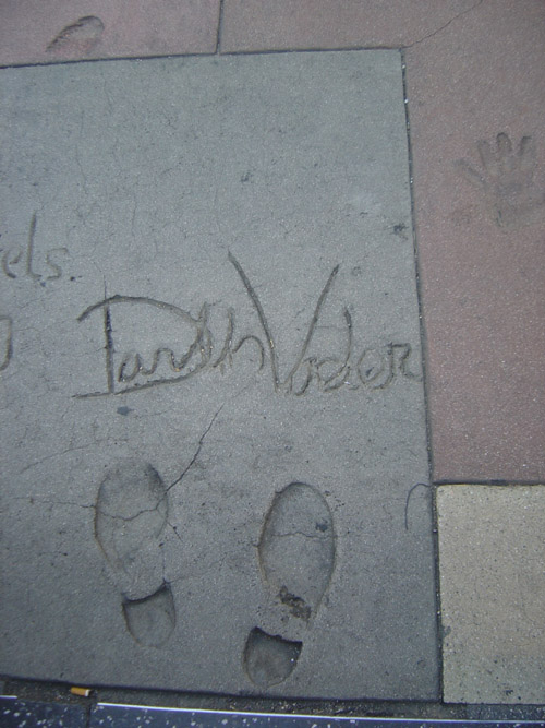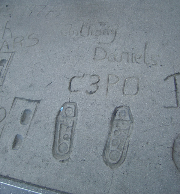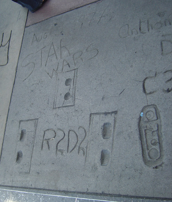The day before it all. Not much to report today, apart from to show off a few teaser pics of the convention center, taken when we went down to pick up our tickets at the registration. We feared there might be queues for this task, but fortunately, this aspect of the show was pretty well organised. Then, for the rest of the day, it was a matter of enjoying the LA sun and the Hollywood tourist spots (where we kept an eye out for anything vaguely Star Wars related...check out the images of the footprints of Star Wars characters at Graumann's Chinese Theater, above).