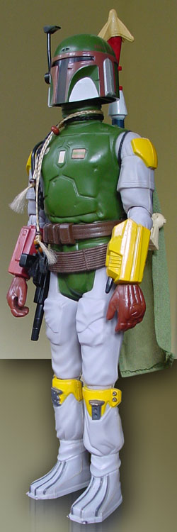 Compared to today's figure tooling, the vintage rendition is a simple interpretation, but all the detail is there, suggesting the sculpt was based on a good selection of reference photos (unlike the cantina creatures of the first 20 figures). He has only 5 points of articulation, and a staid pose, but these attributes characterise the vintage style and in no way detract from his class and charisma. The molding of his torso required some compromise of his jetpack design - and we all wish we had one of the few rocket-firing prototypes we know are floating out there in collectorland (head on over to ToysRGus.com for images and stories related to the rocket-firing versions).
