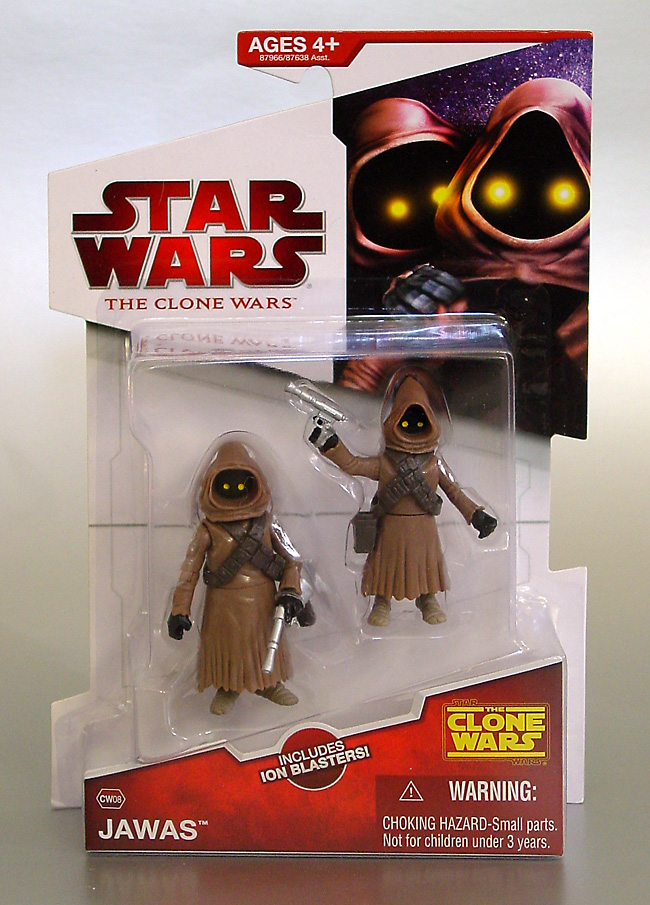 - New wave of the Clone Wars action figures, including - Whorm Loathsom, 4A-7, Obi-Wan Kenobi (space suit), ARF Trooper, Jawas, Clone Trooper with space gear, Admiral Yularen, Super Battle droid, $19.99 each.