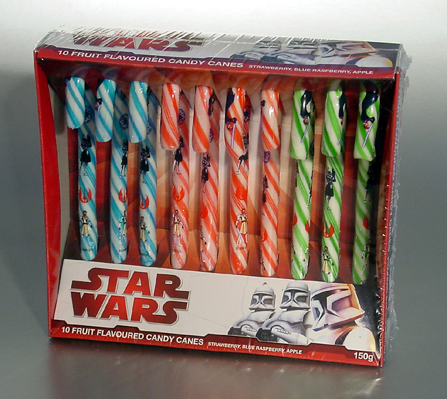 If you are looking for something different to decorate your Christmas tree, K-Mart stores have Clone Wars fruit flavoured candy canes for less than $4.
