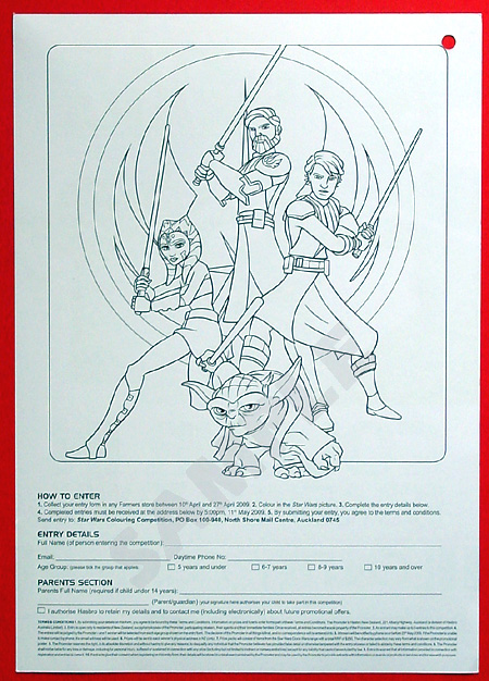 Hasbro NZ is currently runnning a promotion with TV3 for The Clone Wars. The promo runs for 8 weeks (1st week finishes today) � there are amazing prizes of Hasbro toys and other Star Wars product each week. At the end of the promotion there is a grand prize draw which includes a film cel from The Clone Wars signed by George Lucas! It is really exciting!