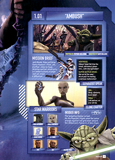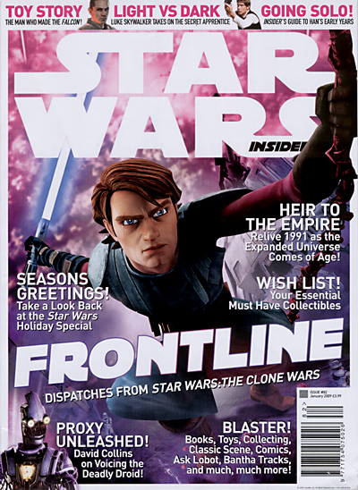 The January 2009 issue of the Star Wars Insider (no.82 for the UK edition, no.106 for the US edition) came out during the holiday break - it's worth taking a quick look at, and Clone Wars aficionados in particular will want to track it down via their local bookstore. Key amongst the feature articles is an eight page guide to the first season (10 episodes) of the Clone Wars television series, which systematically summarises the plots and characters involved (I realise that New Zealand still does not have access to it via public channels, but it looks like the first four episodes will be released on DVD sometime around March).