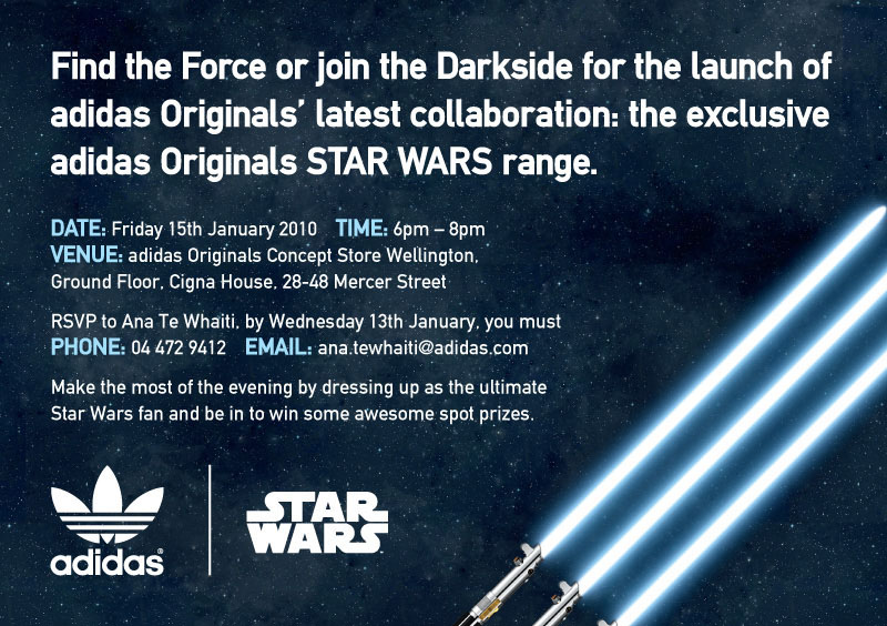 In addition to our earlier post about the imminent (January 15th) release of the adidas Star Wars range, further details are available about the launch event in Wellington.