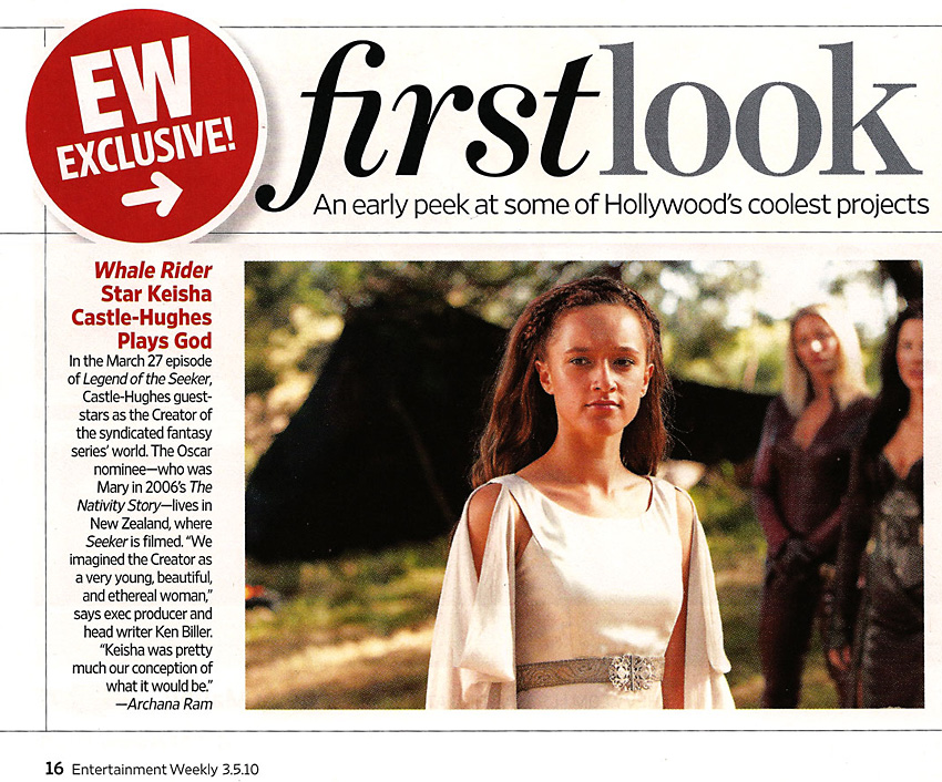 The above image of Keisha comes via the internet's Legend of the Seeker fan network, having originated from an issue of 'Entertainment Weekly'.