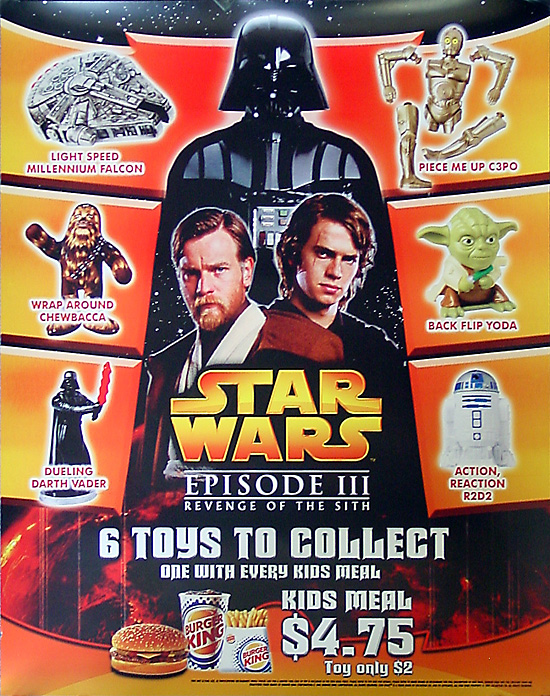 A couple more photos have just become available to round out this archival gallery - pics of the large vinyl banners, used in Burger King branches, that described the Episode 3 promotion and prices. Click on the above thumbnails to view the full size images.