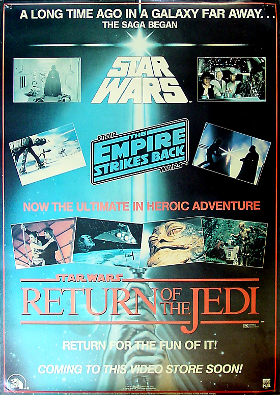 The above photograph of a New Zealand edition of an advertising poster takes us back to 1985...when 'Return of the Jedi' had just becomed available to borrow from your local rental store (in VHS, or Beta).