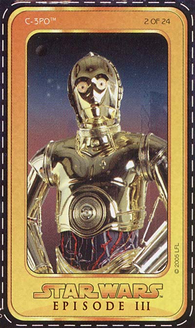 Goodman Fielder produced these products for both Australia and New Zealand. The local version of the packaging conveys the contact details for Goodman Fielder New Zealand Limited. The current incarnation of Goodman Fielder came about in 2001 when component companies merged on both sides of the Tasman. Interestingly, GF NZ formed from the merger of Bluebird, Quality Bakers New Zealand, Champion and Meadow Lea Foods. Both of the first two brands/companies have utilised Lucasfilm licenses in past years: 1997, Quality Bakers bread cards, 1999, Bluebird Multipack Episode 1 cards, and 1999, Bluebird Chips Episode 1 cards.